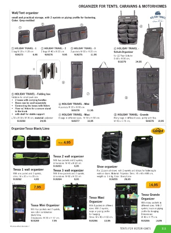 ORGANIZER FOR TENTS, CARAVANS & MOTORHOMES