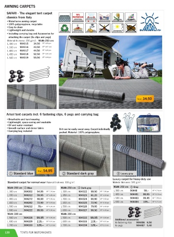 Arisol tent carpets incl. 6 fastening clips, 6 pegs and carrying bag