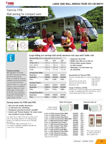 awning on a smooth wall surface, Fiamma front and side walls Page 155-157