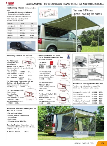 Roof awning F40van Reinforced folding