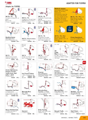 For awning width 220 cm. Standard Adapter kit for Eriba Touring. Renault Trafic < 2015 Opel Vivaro > 2015