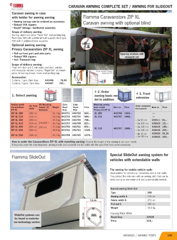 How to order the CaravanStore ZIP XL with matching awning: Choose the length of the awning to suit your needs.