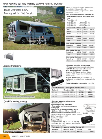 Photo shows awning tent w/ optional mosquito net. 400 cm Ducato (230 - 250 cm) 431793 2880,--