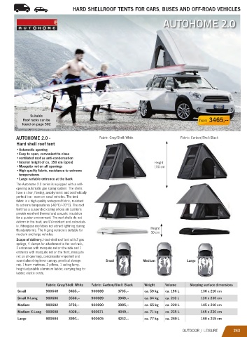 Small 900648 3465,-- 900688 3705,-- ca. 59 kg ca. 196 L 130 x 210 cm