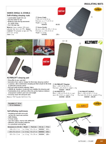 unsurpassed comfort, pack size and weight Dims. L 198 x W 74 x H 13 cm, pack Dims. L 198 x W 135 x H 13 cm