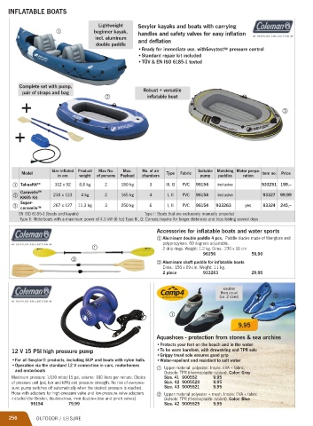Accessories for infl atable boats and water sports