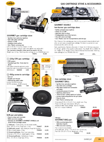 • Stainless steel surface other, as each uses a separate gas cartridge. The stove is supplied in a case