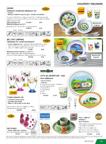 NOTE FOR ALL CHILDREN'S TABLEWARE SETS ON THIS PAGE: Not suitable for the microwave. Please clean carefully with dishwashing soap before fi rst use. Only allow children to use the product under super-