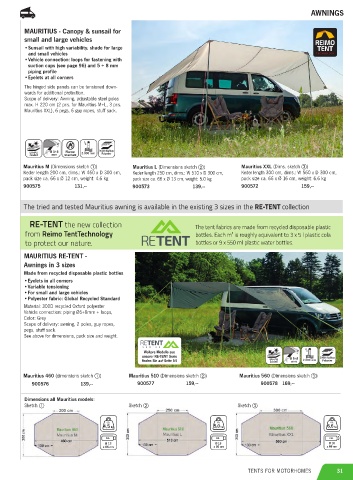The tried and tested Mauritius awning is available in the existing 3 sizes in the RE-TENT collection