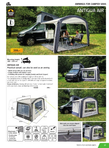 Scope of delivery: Awning with air tube, 2 side/ 1x front wall, 2 steel roof
