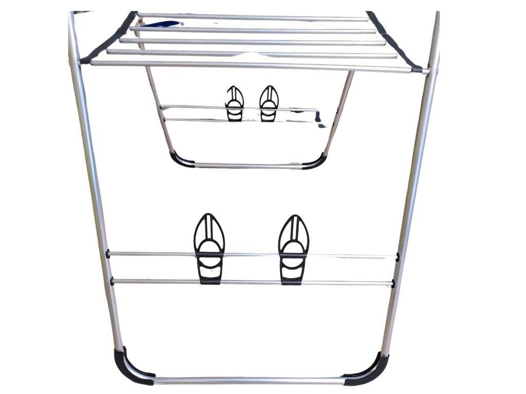 Variabilní sušák na prádlo s jednoduchým skládacím mechanismem. Ideální pomocník na sušení prádla v kempu, chatě nebo balkóně.